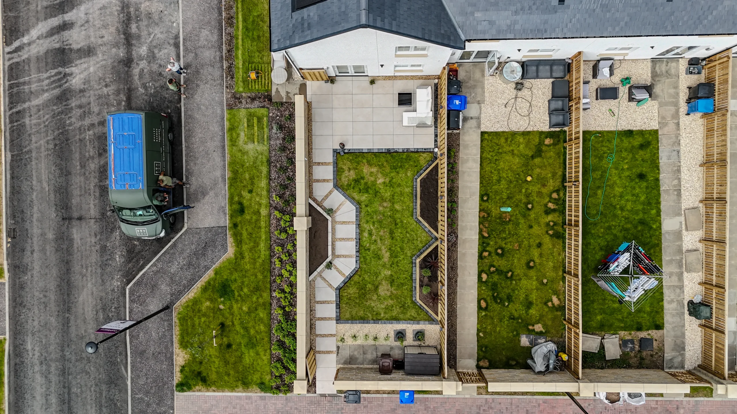 The bin area was screened off and softened with hedging for a tidy, seamless finish.